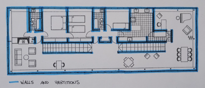 FLOOR PLAN MARKING THE DIVISIONS OF SPACES