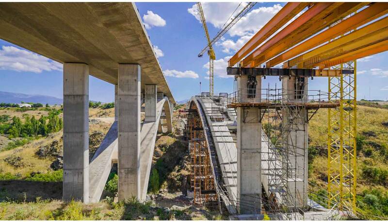 the bridge is located in a very steep and difficullt to access area, for that reason, the accesses for heavy cranes had to extend their turning radius.